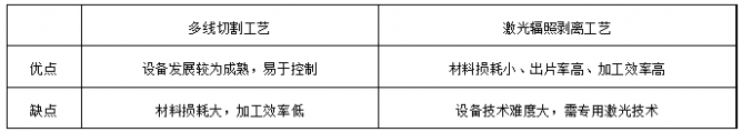 國內(nèi)的多線切割機(jī)、研磨機(jī)設(shè)備在藍(lán)寶石、半導(dǎo)體等方面發(fā)展較為成熟,可以很快轉(zhuǎn)型到碳化硅領(lǐng)域,基本可以滿足生產(chǎn)需求;在激光輻照剝離工藝方面,國內(nèi)外已經(jīng)具備生產(chǎn)機(jī)型,但需要大規(guī)模應(yīng)用驗(yàn)證,積累生產(chǎn)可信數(shù)據(jù)。