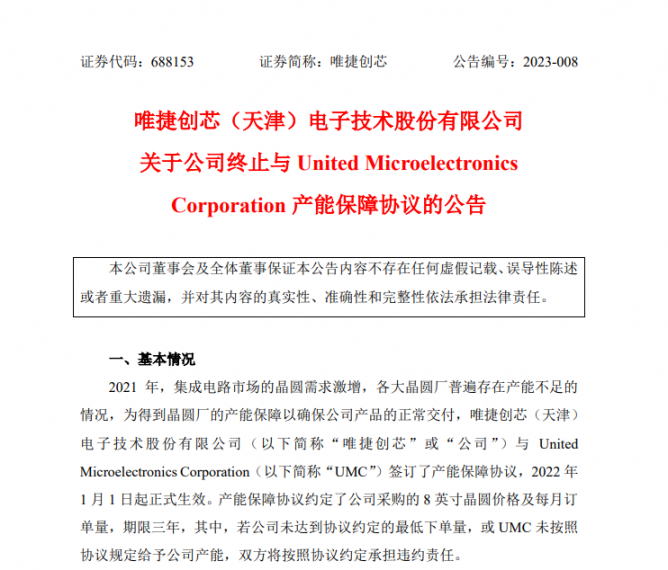 近日,唯捷創(chuàng)芯發(fā)布公告,宣布“終止與UMC(聯(lián)電)產(chǎn)能保障協(xié)議”,并將向聯(lián)電支付400萬(wàn)美元的終止費(fèi)。