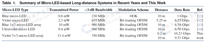 近日,復(fù)旦大學(xué)田朋飛課題組在短距離下實(shí)現(xiàn)單芯片紫光Micro-LED超過10 Gbps通信速率,并且在10米距離下通信速率大于9.5Gbps。
