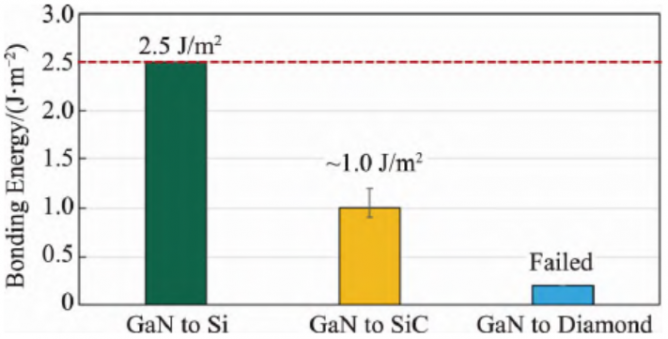 圖9 使用 SAB 方法將 GaN 與 Si、Si C 和金剛石襯底鍵合的強度比較