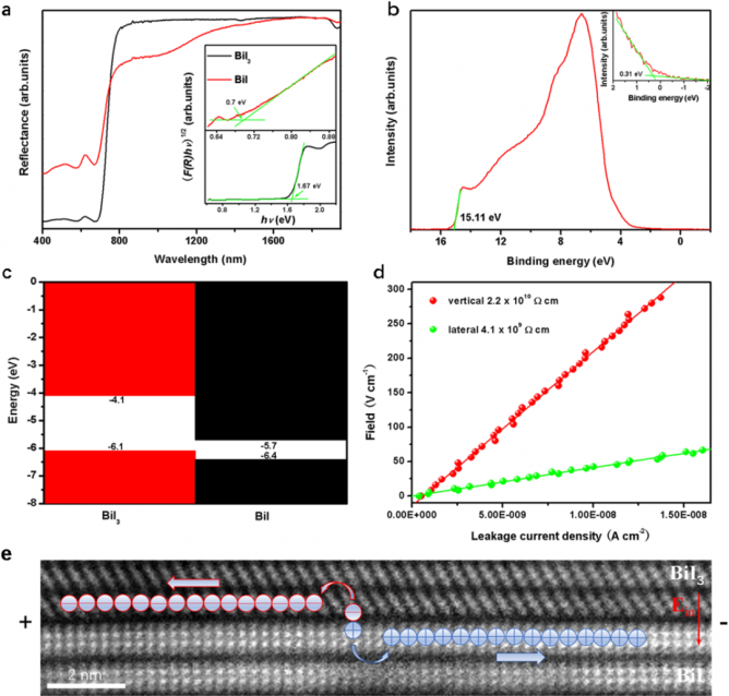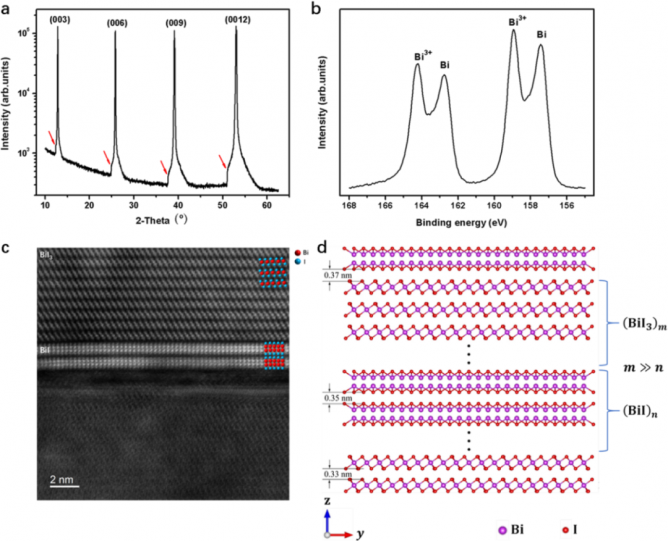 圖1. 溶液方法生長的層狀范德華異質(zhì)結(jié)構(gòu)碘化鉍
