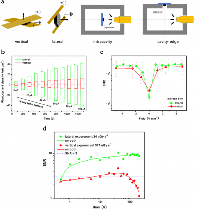 圖4. 范德華異質(zhì)結(jié)構(gòu)碘化鉍的X-射線開/關(guān)響應(yīng)及檢測極限