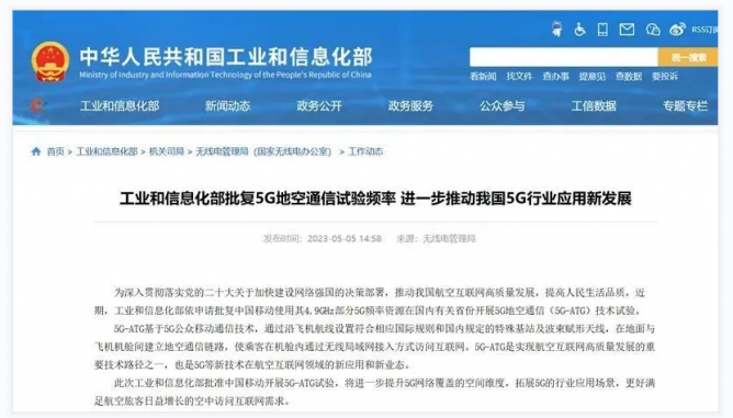 據(jù)工業(yè)和信息化部消息,近期,工業(yè)和信息化部依申請(qǐng)批復(fù)中國移動(dòng)使用其4.9GHz部分5G頻率資源在國內(nèi)有關(guān)省份開展5G地空通信(5G-ATG)技術(shù)試驗(yàn)。