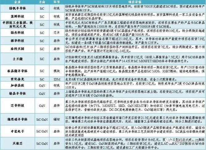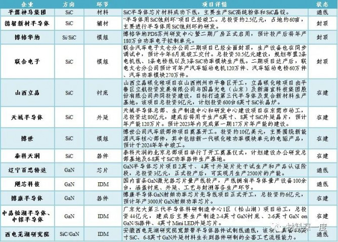 泰科天潤、天域半導(dǎo)體、博世、聯(lián)合電子、西電蕪湖研究院等半導(dǎo)體企業(yè)正加速推進(jìn)項(xiàng)目的進(jìn)展,已有4條產(chǎn)線通線、3條產(chǎn)線封頂、6條產(chǎn)線已開工建設(shè),輔材、材料、材料、襯底、芯片、器件、模塊環(huán)節(jié)都有項(xiàng)目新動向,各環(huán)節(jié)產(chǎn)能都在快速增加。
