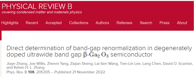 簡(jiǎn)而言之,團(tuán)隊(duì)研究工作通過(guò)Si摻雜實(shí)現(xiàn)目前國(guó)際上最高載流子濃度的Ga2O3摻雜,結(jié)合高分辨率同步輻射硬X射線光電子能譜和DFT理論計(jì)算闡明了Si是Ga2O3最優(yōu)選的n型摻雜劑,并提出Si共振摻雜機(jī)制的理論模型。研究結(jié)果為導(dǎo)電氧化鎵單晶襯底制備和氧化鎵薄膜摻雜電學(xué)性質(zhì)調(diào)控提供了重要理論和實(shí)驗(yàn)基礎(chǔ)。相關(guān)工作以“Direct determination of band-gap renormalization in degenerately doped ultrawide band gap β-Ga2O3 semiconductor”為題發(fā)表在凝聚態(tài)物理知名期刊Physical Review B上。廈門大學(xué)張洪良課題組博士生張佳業(yè)和倫敦大學(xué)學(xué)院博士生Joe Willis為本論文共同第一作者。本工作得到了國(guó)家重點(diǎn)研發(fā)計(jì)劃項(xiàng)目和國(guó)家自然科學(xué)基金的資助和支持。