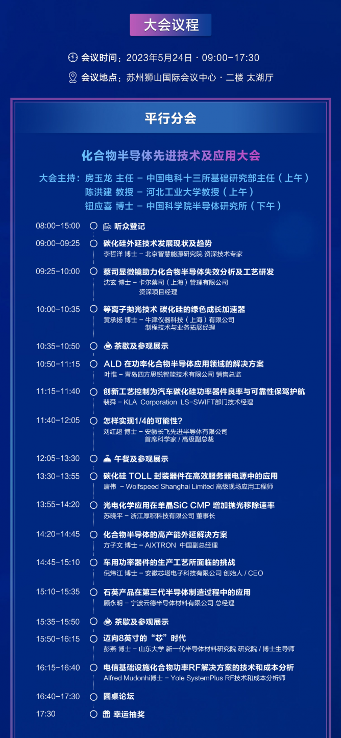 2項會議、2天、1張門票,我社將力邀60+專家智囊團(tuán)、70+參展商、300+參會企業(yè)展開泛半導(dǎo)體產(chǎn)業(yè)高端對話,共促信息交流及商務(wù)合作!誠邀您報名參會,報名鏈接:https://www.compoundsemiconductorchina.net/suzhou/sign