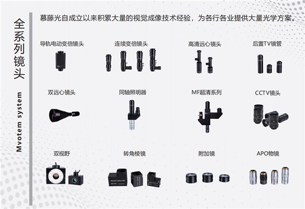 作為已在機(jī)器視覺領(lǐng)域苦心經(jīng)營十余載的老將,江蘇慕藤光精密光學(xué)儀器有限公司(以下簡稱:慕藤光)專業(yè)為工業(yè)半導(dǎo)體、軍工科研、生物醫(yī)療及機(jī)械設(shè)備等行業(yè)提供整套專業(yè)的視覺檢測方案。主打產(chǎn)品包括工業(yè)相機(jī)鏡頭、科研鏡頭、醫(yī)療儀器、機(jī)械鏡頭、紅外鏡頭及各種特殊光學(xué)鏡頭,此外還包括各類透鏡產(chǎn)品等,在全球擁有超3000家客戶。