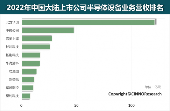 圖片2022年中國(guó)大陸上市公司半導(dǎo)體設(shè)備業(yè)務(wù)營(yíng)收排名,來(lái)源:CINNO Research