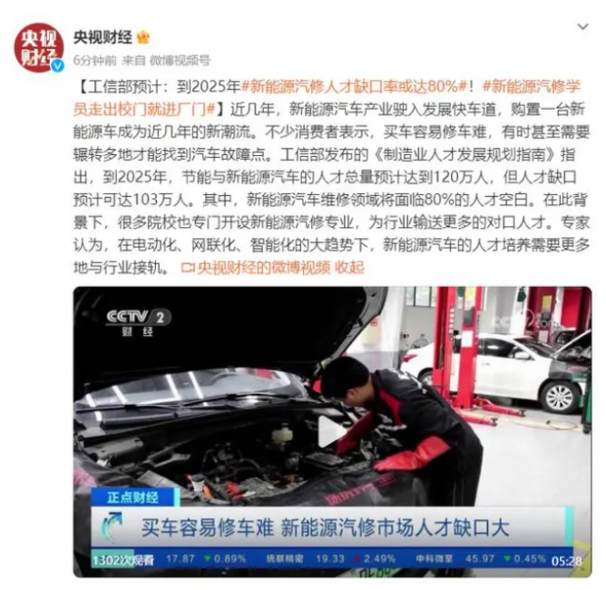 近幾年,新能源汽車產(chǎn)業(yè)駛?cè)氚l(fā)展快車道,購置一臺新能源車成為近幾年的新潮流。不少消費者表示,買車容易修車難,有時甚至需要輾轉(zhuǎn)多地才能找到汽車故障點。工信部發(fā)布的《制造業(yè)人才發(fā)展規(guī)劃指南》指出,到2025年,節(jié)能與新能源汽車的人才總量預(yù)計達到120萬人,但人才缺口預(yù)計可達103萬人。其中,新能源汽車維修領(lǐng)域?qū)⒚媾R80%的人才空白。在此背景下,很多院校也專門開設(shè)新能源汽修專業(yè),為行業(yè)輸送更多的對口人才。專家認為,在電動化、網(wǎng)聯(lián)化、智能化的大趨勢下,新能源汽車的人才培養(yǎng)需要更多地與行業(yè)接軌。