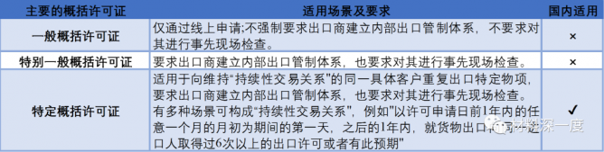 需要向日本政府申請(qǐng)出口許可證:日本對(duì)受管制物項(xiàng)的出口許可證類型總體可分為個(gè)別許可證和概括許可證兩類。根據(jù)適用的國(guó)家/地區(qū)以及適用場(chǎng)景的不同,概括許可證又分為一般概括許可證、特別一般概括許可證、特定概括許可證以及針對(duì)物項(xiàng)返修、向日本海外子公司出口等相關(guān)的特殊概括許可證。