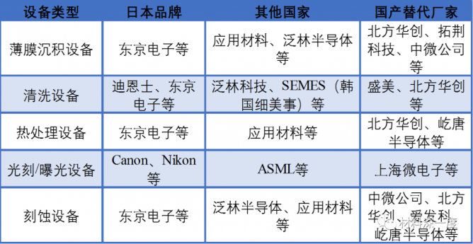 目前設(shè)備主要供應(yīng)廠商: