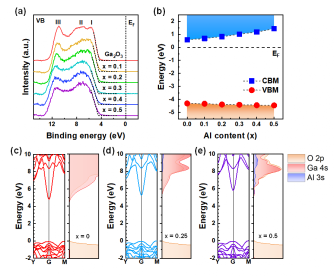 圖4. (AlxGa1-x)2O3合金薄膜的電子結(jié)構(gòu)演變。