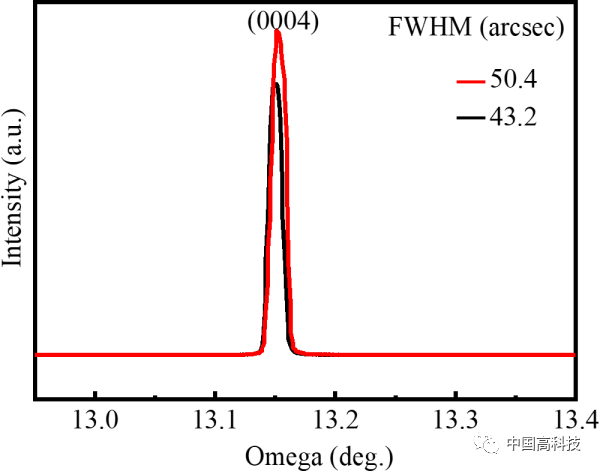 圖3.8英寸4度偏角(4° off-axis)SiC晶片(0004)面的X射線搖擺曲線