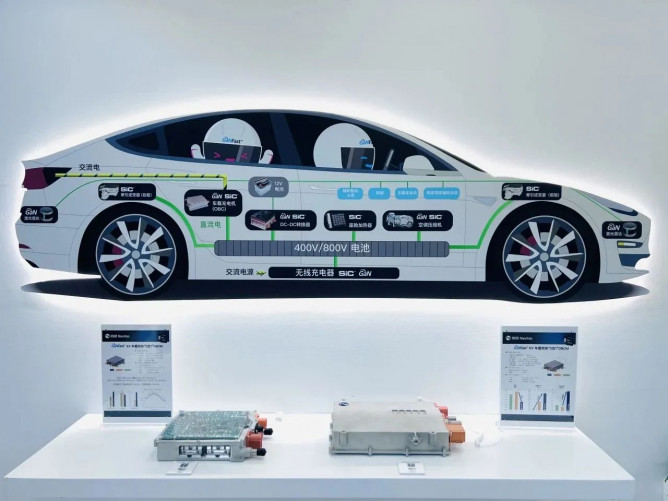 另一亮點(diǎn)是,納微本次全面展示了其對(duì)新能源汽車上各大應(yīng)用GaN+SiC的未來(lái)展望。觀眾可通過(guò)近距離觀看展臺(tái)上的納微EV透視圖,形象直觀地了解納微正在研發(fā)的多種應(yīng)用,如車載充電機(jī),牽引逆變器,DC-DC轉(zhuǎn)換器等。