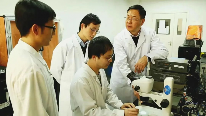 王中林(右)帶領(lǐng)團隊做研究。(北京納米能源所供圖)