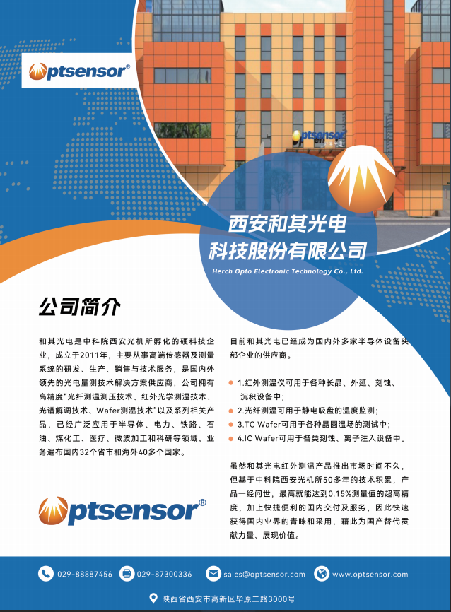 和其光電是中科院西安光機(jī)所孵化的硬科技企業(yè),成立于2011年,主要從事高端傳感器及測(cè)量系統(tǒng)的研發(fā)、生產(chǎn)、銷售與技術(shù)服務(wù),是國(guó)內(nèi)外領(lǐng)先的光電量測(cè)技術(shù)解決方案供應(yīng)商,公司擁有高精度“光纖測(cè)溫測(cè)壓技術(shù)、紅外光學(xué)測(cè)溫技術(shù)、光譜解調(diào)技術(shù)、Wafer測(cè)溫技術(shù)”以及系列相關(guān)產(chǎn)品,已經(jīng)廣泛應(yīng)用于半導(dǎo)體、電力、鐵路、石油、煤化工、醫(yī)療、微波加工和科研等領(lǐng)域,業(yè)務(wù)遍布國(guó)內(nèi)32個(gè)省市和海外40多個(gè)國(guó)家。
