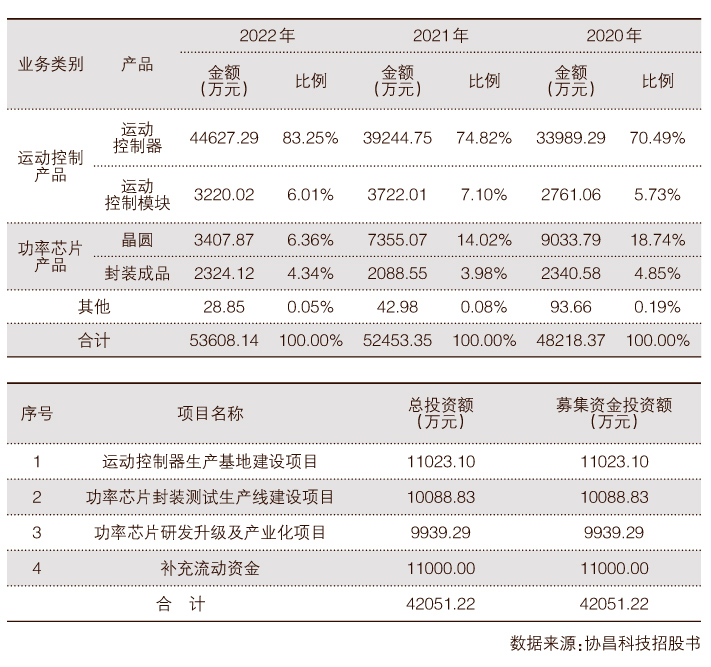 協(xié)昌科技本次募集資金投資項目的總投資額預計為4.2億元,主要投向的項目包括運動控制器生產基地建設項目、功率芯片封裝測試生產線建設項目、功率芯片研發(fā)升級及產業(yè)化項目,以及補充流動資金。