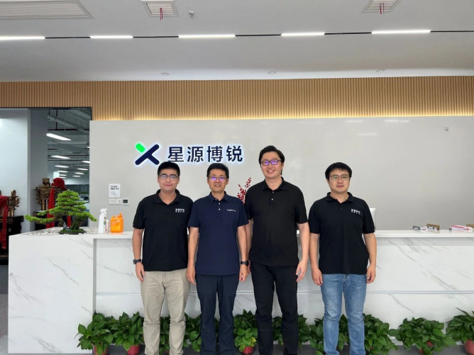 星源博銳董事長茹永剛(左二)與昕感科技董事長王哲(右二)及隨行同事在星源博銳合影