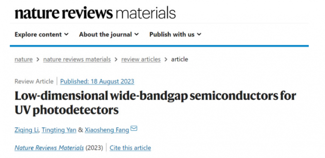 近日,復(fù)旦大學(xué)方曉生課題組在國(guó)際學(xué)術(shù)期刊Nature Reviews Materials上發(fā)表題為《Low-dimensional wide-bandgap semiconductors for UV photodetectors》的綜述論文。光電研究院青年教師李自清和材料科學(xué)系博士研究生嚴(yán)婷婷是論文共同第一作者,方曉生教授是通訊作者。低維寬禁帶半導(dǎo)體的紫外光探測(cè)器在成像、通訊、多光譜探測(cè)、弱光探測(cè)、可穿戴電子等領(lǐng)域表現(xiàn)出廣闊的應(yīng)用前景。本論文聚焦于低維寬禁帶半導(dǎo)體光電探測(cè)器領(lǐng)域的進(jìn)展、挑戰(zhàn)和展望,討論了寬禁帶半導(dǎo)體如何在材料設(shè)計(jì)、維度工程、器件工程等方面調(diào)控形貌結(jié)構(gòu)和光電性能,并闡釋了材料生長(zhǎng)、器件結(jié)構(gòu)和應(yīng)用場(chǎng)景的內(nèi)在聯(lián)系。