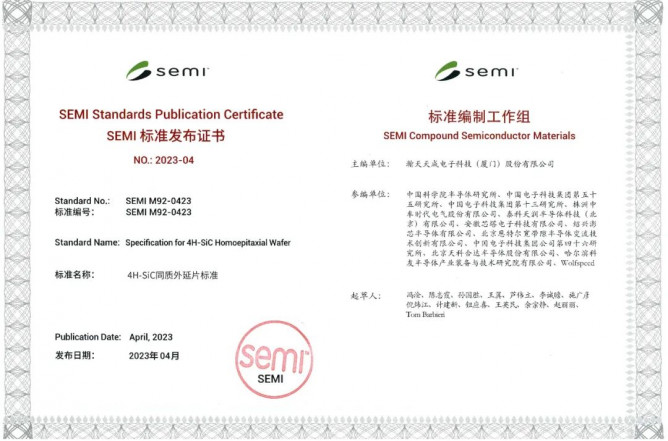 今年第二季度,國(guó)際半導(dǎo)體產(chǎn)業(yè)協(xié)會(huì)(SEMI)正式發(fā)布了碳化硅半導(dǎo)體外延晶片全球首個(gè)SEMI國(guó)際標(biāo)準(zhǔn)——《4H-SiC同質(zhì)外延片標(biāo)準(zhǔn)》(Specification for 4H-SiC Homoepitaxial Wafer)。