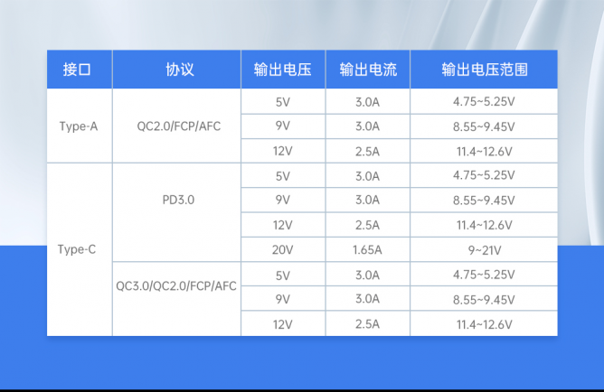 ▋輸出協(xié)議豐富:支持 PD、QC、FCP等快充協(xié)議,配備過溫、過載、短路保護功能,可以滿足各種不同的充電設備,給予用戶更快捷便利的使用體驗。