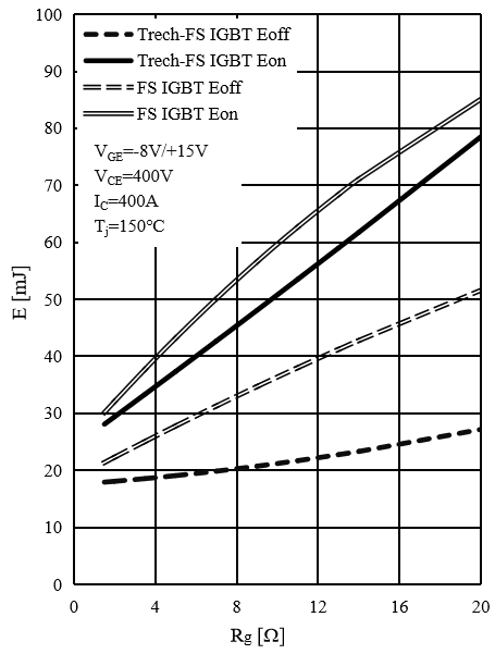 圖1:FS IGBT與Trech-FS IGBT開關(guān)損耗隨電阻變化曲線