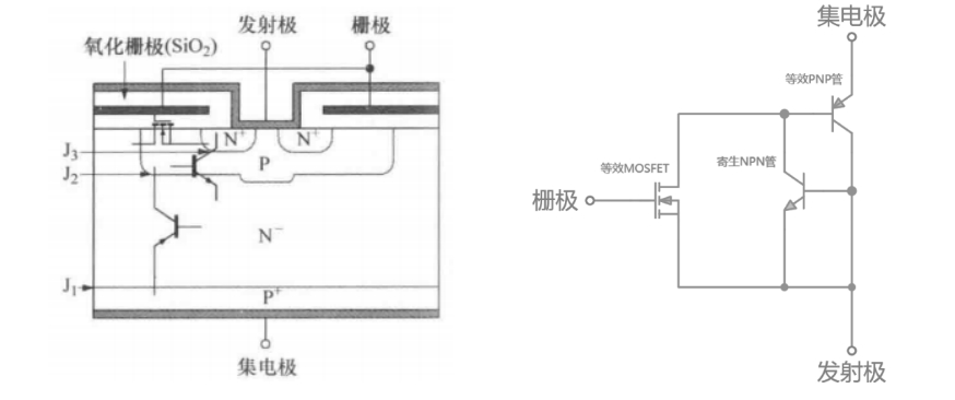 圖3:NPT型IGBT(左)與其等效電路(右)