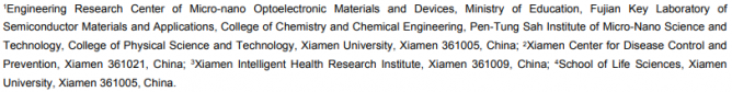 該項(xiàng)工作由廈門大學(xué)、廈門市疾病預(yù)防控制中心、廈門市智慧健康研究院等單位合作完成。廈門大學(xué)化學(xué)化工學(xué)院康聞宇特任副研究員、廈門疾控中心鄭靖主任技師為本文共同第一作者??德動?、廈門大學(xué)薩本棟微納米研究院尹君副教授、物理科學(xué)與技術(shù)學(xué)院康俊勇教授為共同通訊作者。