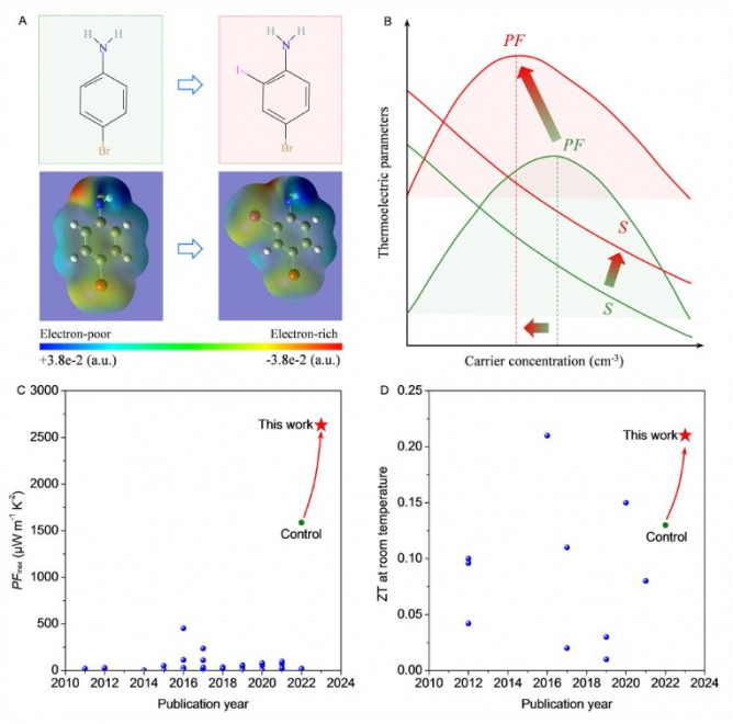 圖1 (Br-C6H4-NH2)2CuBr2新材料:期刊Table of Contents(左),功率因子比較圖(右)