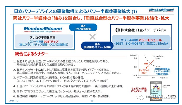對于此次業(yè)務(wù)出售,日立表示:“為了使日立功率器件在預(yù)計(jì)將繼續(xù)快速增長的功率半導(dǎo)體市場中繼續(xù)增長,我們需要增加美蓓亞三美旗下的產(chǎn)能,該公司定位于模擬半導(dǎo)體業(yè)務(wù)作為其核心業(yè)務(wù)之一。”我們得出的結(jié)論是,前進(jìn)的最佳途徑是擴(kuò)大和提高制造效率。”