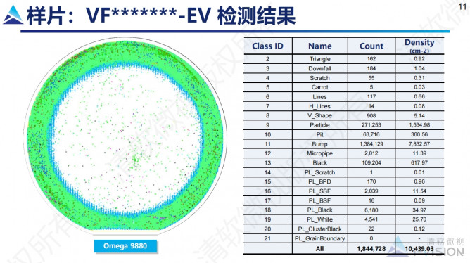 清軟微視是清華大學(xué)知識產(chǎn)權(quán)轉(zhuǎn)化的高新技術(shù)企業(yè),專注于化合物半導(dǎo)體視覺領(lǐng)域量檢測軟件與裝備研發(fā)。其自主研發(fā)的針對碳化硅(SiC)和氮化鎵(GaN)的襯底和外延無損檢測裝備Omega系列產(chǎn)品,可以檢測碳化硅和氮化鎵晶片在生產(chǎn)制造過程中產(chǎn)生的表面缺陷和內(nèi)部晶格缺陷,支持BF/DIC/DF/PL 多種成像方式,已經(jīng)通過五家主流廠商的六大類數(shù)千塊量產(chǎn)片測試驗證。報告顯示,Omega系列化合物襯底和外延檢測設(shè)備,應(yīng)用于多尺寸SiC/GaN 等襯底/外延生產(chǎn)過程。支持DIC/明場/多角度暗場/PL成像方式的自由配置組合。適用于透明/半透明/不透明襯底/外延片 表面/側(cè)邊/背面缺陷檢測。