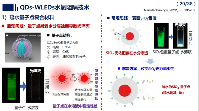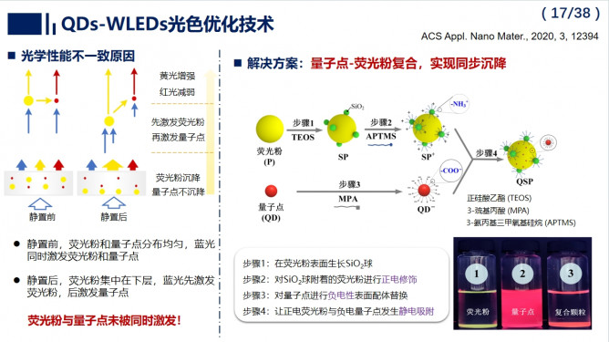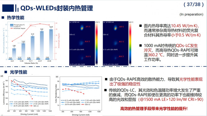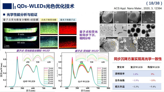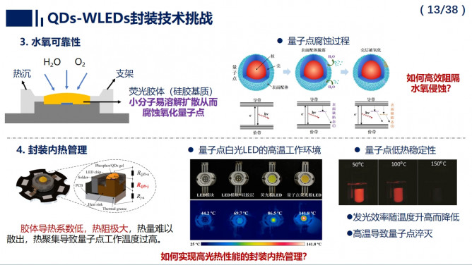 報告指出,QDs-WLEDs為照明與顯示行業(yè)發(fā)展帶來新的機遇,同時面臨光-熱協(xié)同封裝挑戰(zhàn)。團隊歷時二十余年,探明了芯片與微納熒光材料間的多尺度能量傳輸與轉(zhuǎn)換機理,從光熱協(xié)同角度,提出了光色優(yōu)化、水氧阻隔、內(nèi)熱管理等全流程封裝解決方案,也期待與產(chǎn)業(yè)界攜手推動QDs-WLEDs走向大規(guī)模高端應(yīng)用。