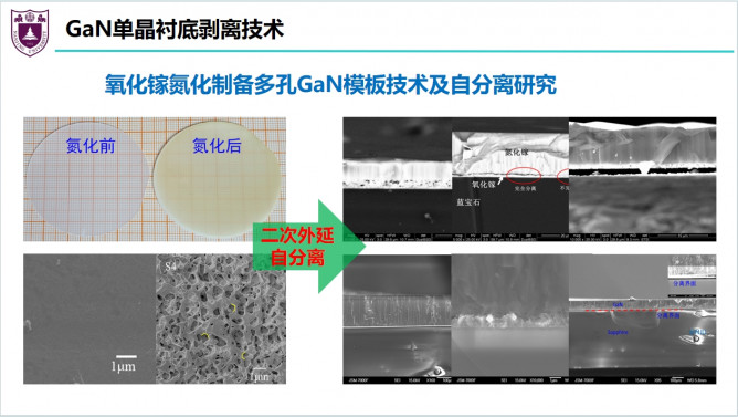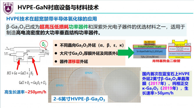 報告中介紹了大尺寸HVPE設備模擬與仿真、HVPE-GaN襯底材料技術(shù)、HVPE-GaN單晶襯底技術(shù)、HVPE-GaN襯底設備與材料技術(shù)、GaN單晶襯底剝離技術(shù)等研究進展。大尺寸HVPE設備模擬與仿真,采用有限元法對6英寸HVPE反應室內(nèi)氣體的輸運現(xiàn)象進行模擬,以獲得最佳的工藝參數(shù)以同時滿足高生長速率和高均勻性的薄膜生長需求。大尺寸通用型HVPE國產(chǎn)化設備,高生長速率(>100µm/h)、高厚度均勻性(>95%)、自主成核、鎵源高利用率且長時間穩(wěn)定供應、長壽命反應室、通用性強(GaN/Ga2O3 外延且互為襯底外延)。