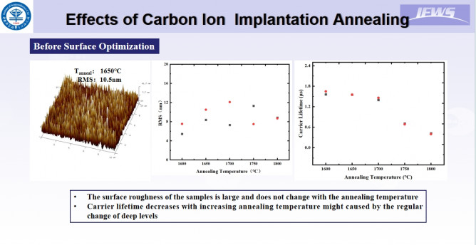 4H-SiC雙極器件對外延層的要求涉及厚外延層和低摻雜濃度實現(xiàn)高阻斷電壓,以及用于低正向電壓降的高載流子壽命。報告中分享了6μm 4H-SiC外延層、10-11μm 4H-SiC外延層、4H-SiC外延層的批量生產(chǎn),DLTS樣品和設(shè)備,4H-SiC材料中的深能級,晶片中深能級的分布,缺陷濃度和載流子壽命,晶片中深能級的控制,退火對深層的影響,碳離子注入退火的影響等研究進展。