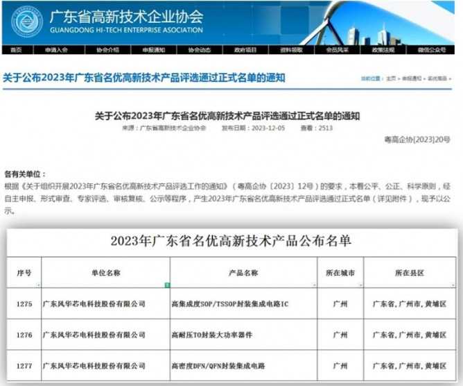 近日,廣東省高新技術(shù)企業(yè)協(xié)會(huì)網(wǎng)發(fā)布《關(guān)于公布2023年廣東省名優(yōu)高新技術(shù)產(chǎn)品評(píng)選通過(guò)正式名單的通知》,國(guó)星光電子公司風(fēng)華芯電申報(bào)的“高集成度SOP/TSSOP封裝集成電路IC”“高耐壓T0封裝大功率器件”“高密度DFN/QFN封裝集成電路”三項(xiàng)產(chǎn)品成功榮獲“2023年廣東省名優(yōu)高新技術(shù)產(chǎn)品”稱號(hào),為公司科技創(chuàng)新工作再添佳績(jī)。