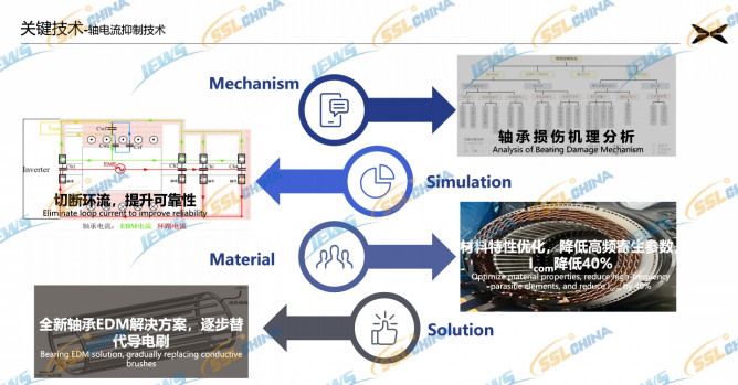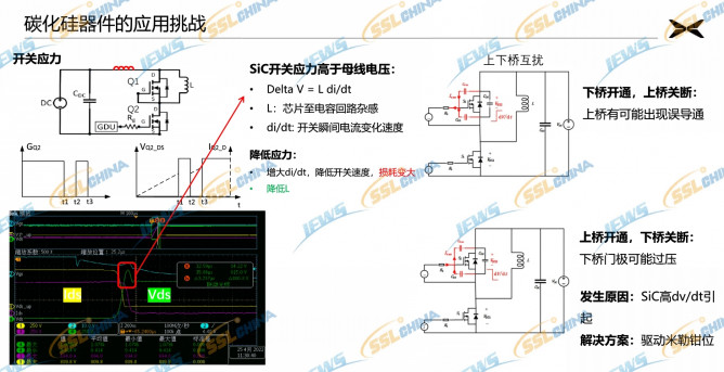 當(dāng)前,關(guān)于電機(jī)控制器與高壓系統(tǒng),呈現(xiàn)出三電系統(tǒng)高壓化,充電速度大幅提升,充電電流降低,線束成本降低。SiC 器件應(yīng)用優(yōu)勢,相比IGBT器件,3-5% 效率提升;電池成本降低。功率器件模組化,功率密度提升,裝配難度與工藝成本下降。碳化硅器件的應(yīng)用挑戰(zhàn),涉及到雜散參數(shù)的存在引發(fā)了一系列的應(yīng)用問題,關(guān)鍵技術(shù)涉及SiC模塊、EMC開發(fā)、軸電流抑制技術(shù)。其中,SiC模塊包括設(shè)計(jì)能力、分析能力、仿真能力、測試能力。
