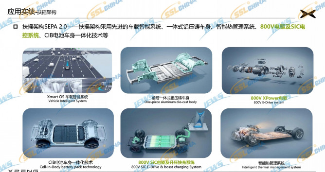 EMC開發(fā)的挑戰(zhàn)在于碳化硅高開關(guān)速度、高電壓,增大高頻共模噪聲;系統(tǒng)耦合干擾,兼容性設(shè)計(jì)難度高;充電功能復(fù)用,EMC濾波挑戰(zhàn)增大;濾波設(shè)計(jì)迭代,周期長、代價(jià)高;關(guān)鍵技術(shù)涉及電驅(qū)動(dòng)總成電磁兼容性滿足,CAE電磁兼容設(shè)計(jì),整車系統(tǒng);軸電流抑制技術(shù),電驅(qū)耐久;全新軸承EDM解決方案,BVR降低。報(bào)告中還介紹了應(yīng)用實(shí)績-扶搖架構(gòu),以及超智駕轎跑SUV 小鵬G6,其中,扶搖架構(gòu)SEPA 2.0——扶搖架構(gòu)采用先進(jìn)的車載智能系統(tǒng)、一體式鋁壓鑄車身、智能熱管理系統(tǒng)、800V電驅(qū)及SIC電控系統(tǒng)、CIB電池車身一體化技術(shù)等。