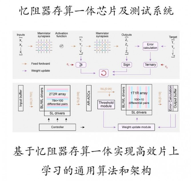 當(dāng)前國際上的相關(guān)研究主要集中在憶阻器陣列層面的學(xué)習(xí)功能演示,然而實(shí)現(xiàn)全系統(tǒng)集成的、支持高效片上學(xué)習(xí)的憶阻器芯片仍面臨較大挑戰(zhàn),至今尚未實(shí)現(xiàn),主要在于傳統(tǒng)的反向傳播訓(xùn)練算法所要求的高精度權(quán)重更新方式與憶阻器實(shí)際特性的適配性較差。