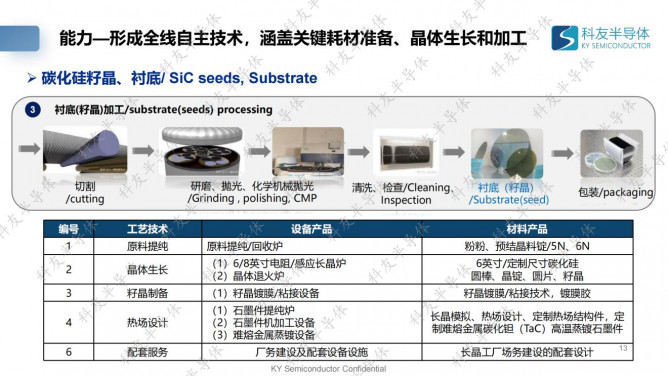 哈爾濱科友半導(dǎo)體產(chǎn)業(yè)裝備與技術(shù)研究院有限公司是一家專注于第三代半導(dǎo)體碳化硅裝備研發(fā)、襯底制備及科研成果轉(zhuǎn)化的高新技術(shù)企業(yè),研發(fā)覆蓋半導(dǎo)體裝備研制、長晶工藝、襯底加工等多個領(lǐng)域,累計授權(quán)專利近百項,參編國家標(biāo)準(zhǔn)5項,實現(xiàn)先進技術(shù)自主可控??朴寻雽?dǎo)體在哈爾濱新區(qū)打造產(chǎn)、學(xué)、研一體化的第三代半導(dǎo)體產(chǎn)學(xué)研聚集區(qū),實現(xiàn)碳化硅材料端從原材料提純-裝備制造-晶體生長-襯底加工-外延晶圓的材料端全產(chǎn)業(yè)鏈閉合,致力成為第三代半導(dǎo)體關(guān)鍵材料和高端裝備主要供應(yīng)商。