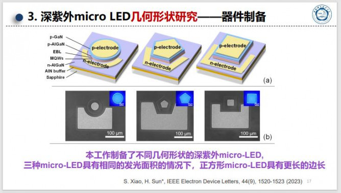 近日,第九屆國(guó)際第三代半導(dǎo)體論壇(IFWS)&第二十屆中國(guó)國(guó)際半導(dǎo)體照明論壇(SSLCHINA)于廈門(mén)召開(kāi)。期間,“氮化物半導(dǎo)體固態(tài)紫外技術(shù)”分會(huì)上,中國(guó)科學(xué)技術(shù)大學(xué)孫海定教授做了“用于日盲光通信的高效DUV微型LED和新型光電探測(cè)器的開(kāi)發(fā)”的主題報(bào)告,分享了最新研究成果。