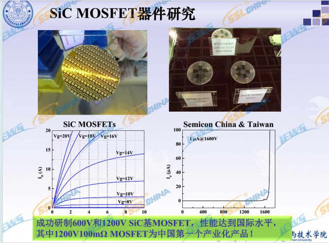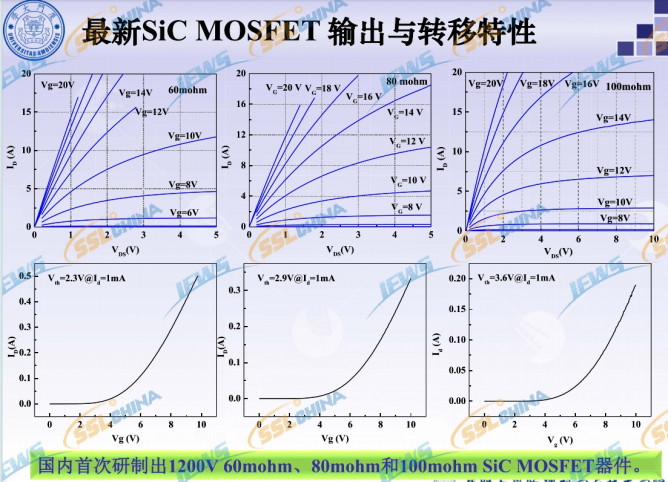報(bào)告指出,SiC MOSFET器件研究方面,成功研制600V和1200V SiC基MOSFET,性能達(dá)到國(guó)際水平。國(guó)內(nèi)首次研制出1200V 60mohm、80mohm和100mohm SiC MOSFET器件。目前SiC MOSFET的問題涉及柵氧化層的可靠性仍然是SiC MOSFET器件需要解決的關(guān)鍵問題;閾值電壓Vth隨溫度提高下降;柵壓非對(duì)稱性(如-10V—25V);DMOSFET器件溝道遷移率較低,通態(tài)電阻較高;UMOSFET器件可靠性亟需提高;1200V以下,溝槽MOSFET將是未來SiC MOSFET器件的發(fā)展方向。