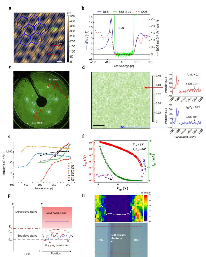 據(jù)了解,該項(xiàng)研究采用創(chuàng)新的準(zhǔn)平衡退火方法,制備出超大單層單晶疇半導(dǎo)體外延石墨烯(SEG),具有生長(zhǎng)面積大、均勻性高,工藝流程簡(jiǎn)單、成本低廉等優(yōu)勢(shì)。該方法制備的半導(dǎo)體石墨烯,擁有約600毫電子伏帶隙以及高達(dá)5500厘米平方每伏特秒的室溫霍爾遷移率,優(yōu)于目前所有二維晶體至少一個(gè)數(shù)量級(jí)。以該半導(dǎo)體外延石墨烯制備的場(chǎng)效應(yīng)晶體管開(kāi)關(guān)比高達(dá)10000,基本滿足了工業(yè)化應(yīng)用需求。