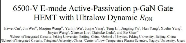 1. J. Cui, J. Wei, M. Wang, Y. Wu, J. Yang, T. Li, J. Yu, H. Yang, X. Yang, J. Wang, X. Liu, D. Ueda, and B. Shen, 6500-V E-mode active-passivation p-GaN gate HEMT with ultralow dynamic RON. IEDM, San Francisco, CA, USA, 2023, sec. 26-1.