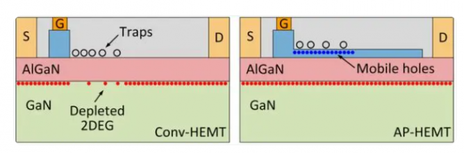 早在 20 年前,美國加州大學圣巴巴拉分校研究人員嘗試采用一個 p 型半導體層,來屏蔽器件表面陷阱的影響,但未取得理想的結果。