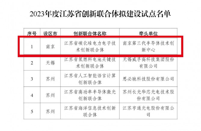 近日,江蘇省科學(xué)技術(shù)廳公示2023年度江蘇省創(chuàng)新聯(lián)合體擬建設(shè)試點(diǎn)名單,國(guó)家第三代半導(dǎo)體技術(shù)創(chuàng)新中心(南京)牽頭7家高等院校、科研院所和龍頭企業(yè)共同組建的江蘇省碳化硅電力電子技術(shù)創(chuàng)新聯(lián)合體成功入選,成為本年度全省5家創(chuàng)新聯(lián)合體擬建設(shè)試點(diǎn)之一,且為全市唯一入選。