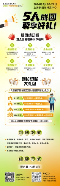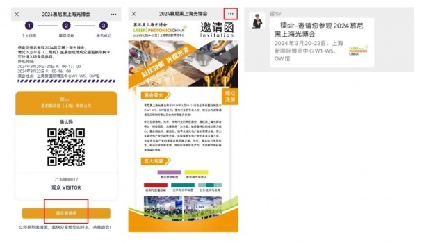 *前100名完成擴邀指標觀眾即可獲得好禮,名額有限,先到先得 *本活動參與截止時間為2024年3月11日24:00 *3月15日前主辦方將以短信形式通知獲獎名單 *以上禮品不可疊加或重復領取,1人僅限領取1份 *獲獎觀眾請于展會期間憑本人有效身份及短信領取禮品;如無法到場,將視為自動放棄領取禮品。 觀眾擴邀攻略: *注冊成功后移動端和PC端可分別按下方步驟提示進行擴邀 移動端: PC端: 鐳Sir在此邀請光電領域及各大應用領域?qū)I(yè)人士組團前來參觀,5人即可成團,還能尊享便捷登記、專人對接、免費餐券、企業(yè)禮包、團隊合影、商貿(mào)配對等優(yōu)質(zhì)服務,全面提升觀眾體驗感及滿足參觀需求! 慕尼黑上海光博會源自母展德國慕尼黑光電展,自2006年立足上海。作為亞洲重要的激光、光學、光電行業(yè)年度聚會,新一屆慕尼黑上海光博會將涵蓋光電技術上下游產(chǎn)業(yè)鏈,布局更清晰,展品種類更精細,助力構建新發(fā)展格局。本屆展會展示面積近80000平米,將吸引1200家展商齊聚申城,集中展示激光智能制造、激光器與光電子、光學與光學制造、檢測與質(zhì)量控制和紅外技術與應用產(chǎn)品,展會攜手全球光電產(chǎn)業(yè)的領軍企業(yè),助力傳統(tǒng)行業(yè)、新興行業(yè)創(chuàng)新發(fā)展,共同探索光電產(chǎn)業(yè)的未來發(fā)展方向,聚焦新技術、新趨勢,加快形成新質(zhì)生產(chǎn)力,為新時代新征程加快科技創(chuàng)新。 敬請期待 本屆慕尼黑上海光博會將繼續(xù)以對接行業(yè)優(yōu)質(zhì)資源為初心,立創(chuàng)高效且立足前沿的商貿(mào)平臺,計劃推出主題觀展路線TOUR游活動,精心打造以光學技術、激光技術、新產(chǎn)品為背景的三條主題路線,為來自不同行業(yè)背景觀眾,提供探索發(fā)展的思路和更多商機。 路線一:“創(chuàng)芯制造,光耀未來”——光芯片助力半導體產(chǎn)業(yè)高質(zhì)量發(fā)展 路線二:“以智降碳,智勝未來”——高效激光點亮綠色發(fā)展 路線三:“推陳出新,擁抱未來”——新品追光之旅 現(xiàn)在即刻注冊,免費參觀,贏取好禮: 觀眾參觀咨詢: 如您有任何問題或需求,請與我們的觀眾參觀服務團隊聯(lián)絡,他們將為您提供一對一的供需配對服務,讓您不虛此行。 慕尼黑展覽(上海)有限公司 楊妮婷女士 電話: +86 21 2020 5695 郵箱: nettie.yang@mm-sh.com