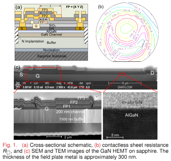 圖1:150mm GaN HEMT器件及外延結(jié)構(gòu)圖