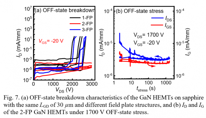 藍(lán)寶石襯底上高性能GaN HEMTs的成功展示和評(píng)估為即將到來(lái)的1700 V商用GaN器件提供了一個(gè)非常有前景的選擇。1.5 μm的薄緩沖層表現(xiàn)出非常高的均勻性、出色的耐壓能力和可忽略不計(jì)的電流崩塌。制備的GaN HEMT器件在3000 V以上兼顧了低RON和高VBD,并通過(guò)1700 V的長(zhǎng)期HTRB應(yīng)力初步驗(yàn)證了其魯棒性。