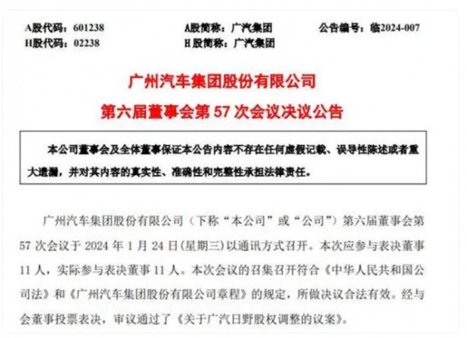 廣汽集團(tuán)(601238)1月24日晚公告,為應(yīng)對新能源汽車快速發(fā)展趨勢,實現(xiàn)合營企業(yè)廣汽日野汽車有限公司(下稱“廣汽日野”)向新能源商用車的戰(zhàn)略轉(zhuǎn)型,經(jīng)股東方協(xié)商一致,擬對廣汽日野進(jìn)行股權(quán)調(diào)整,由本公司、廣州氫云新能源科技投資合伙企業(yè)(有限合伙)(廣汽日野管理層和核心骨干員工設(shè)立的有限合伙企業(yè),下稱“氫云新能源”)以評估值并結(jié)合期間損益情況等為基礎(chǔ),分別以2969.09萬元、407.39萬元受讓日野自動車株式會社持有的廣汽日野39.72%、5.45%股權(quán)。