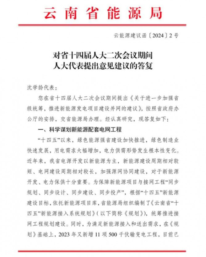 1月25日,云南省能源局發(fā)布對省十四屆人大二次會議期間人大代表沈?qū)W齡提出意見建議的答復(fù)。答復(fù)指出,目前,云南省列入年度建設(shè)方案的項(xiàng)目,云南電網(wǎng)公司已批復(fù)432個(gè),裝機(jī)4896.79萬千瓦;其中,已批復(fù)了曲靖40個(gè),裝機(jī)672.33萬千瓦。截至2023年底,曲靖市累計(jì)投產(chǎn)421.86萬千瓦(其中2023年新增投產(chǎn)400.34 萬千瓦)。